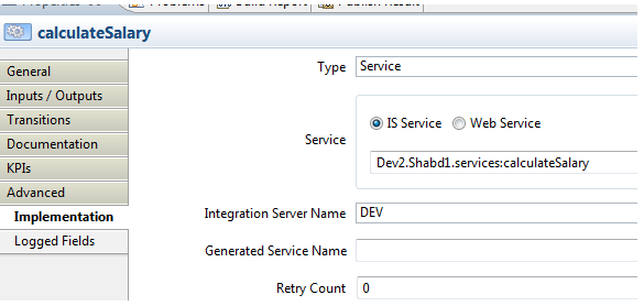 - Under Implementation properties of "calculateSalary" Activity browse the "calculateSalary" flow service created in above step.